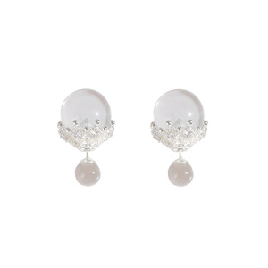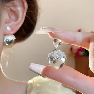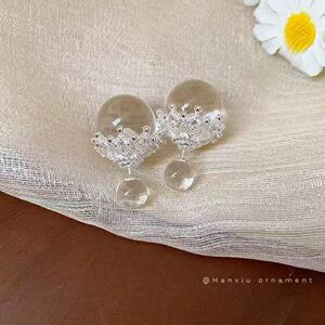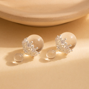时尚百搭前后两戴轻奢高级感耳饰银针镶钻镂空透明玻璃珠皇冠耳钉