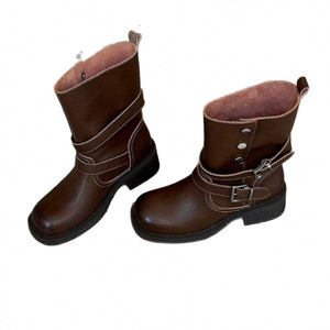 英伦风马丁靴女秋冬2025新款复古粗跟皮带扣套筒西部牛仔靴机车靴