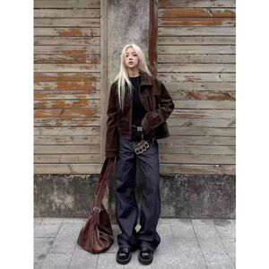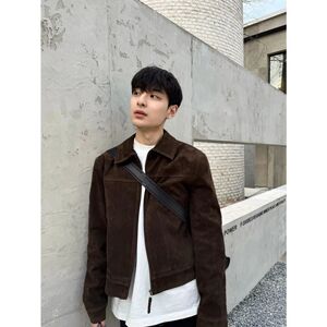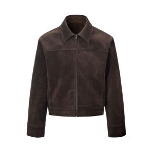 春秋季美式巴恩深咖绒面复古翻领飞行员夹克男女休闲情侣外穿外套