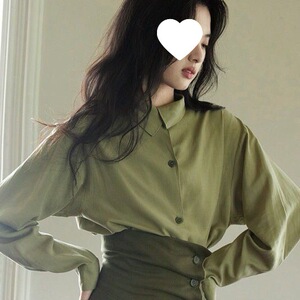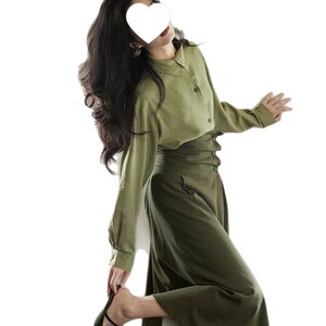 法式绿色不对称领复古套装女2025秋季新款高级感衬衫半身裙潮