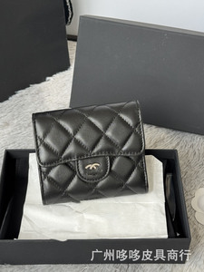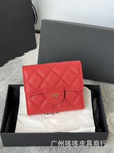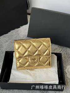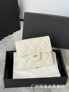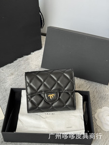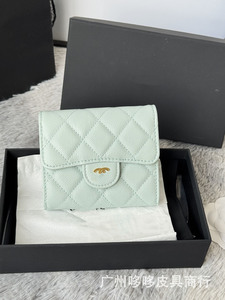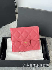 高品质爆款小香风真皮大容量三折叠钱包通用鱼子酱菱格短款钱包