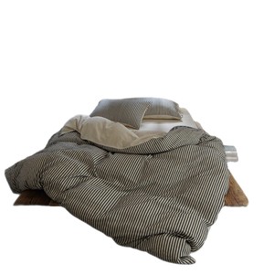 A类100全棉水洗棉条纹四件套纯棉床单亚麻被套罩学生宿舍床上用品