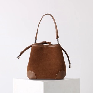 2025新款迷你复古美拉德时尚磨砂牛皮抽绳水桶包高级感百搭单肩包