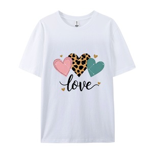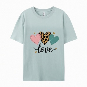 EBAY热卖2025新款LOVE爱心印花T恤夏款个性时尚休闲宽松纯棉短袖