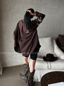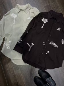 JVV十三行2025秋季新款设计感刺绣图案宽松衬衣休闲长袖衬衫90587