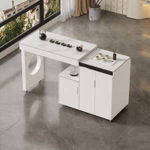 可移动伸缩旋转茶车轻奢烧水壶一体阳台家用小户型岩板茶桌椅组合