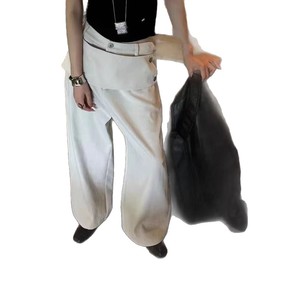 美式小众假两件工装休闲裤女秋季2025新款复古高腰修身显瘦直筒裤