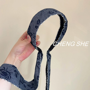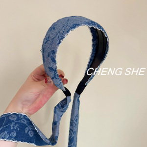 牛仔玫瑰刺绣花边带齿压发箍飘带民族风绣花复古气质宽边头箍发饰