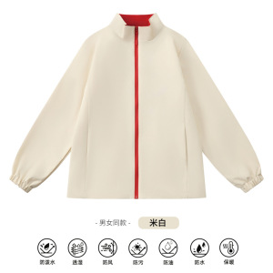 KF5166A【立领拼色拉链 防刮耐磨】米白色