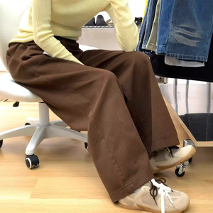 咖色高腰牛仔裤女2025春季新款显瘦宽松垂感直筒拖地裤子慵懒风