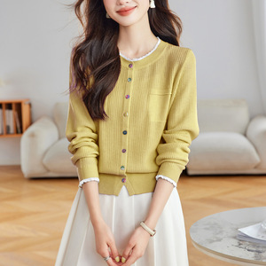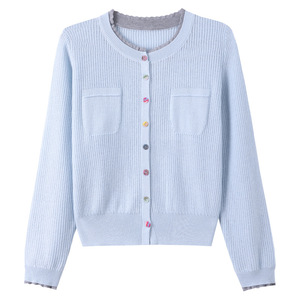 半开领针织开衫女士洋气外搭宽松休闲百搭显瘦假兜长袖薄款彩扣上