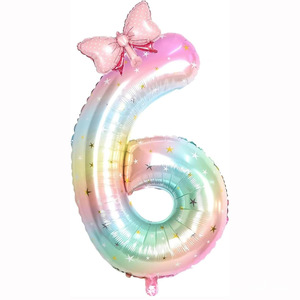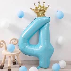 42寸站立底座公主粉皇冠数字气球女孩生日周年纪念派对装饰气球