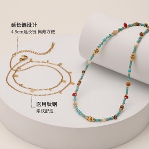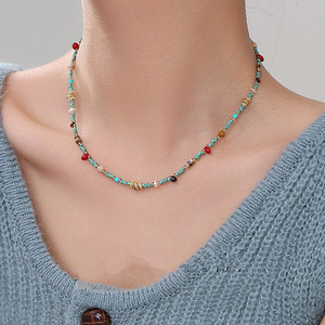进口小米珠多巴胺彩色天然石项链独气质时尚红玛瑙淡水珍珠锁骨链
