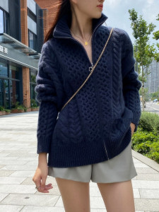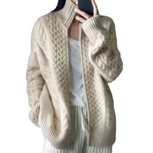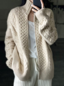 重磅加厚羊毛衫女绒高领拉链毛衣开衫慵懒宽松麻花针织上衣外套