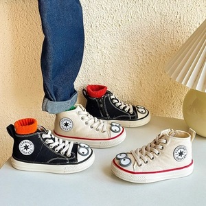 儿童宝宝高帮帆布鞋春秋款侧拉链男童卡通布鞋女童软底百搭学步鞋