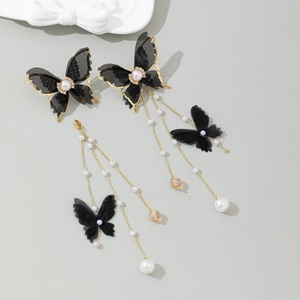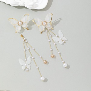 森系仙气飘飘镶钻珍珠蝴蝶流苏耳环超仙高级气质甜美耳饰