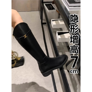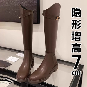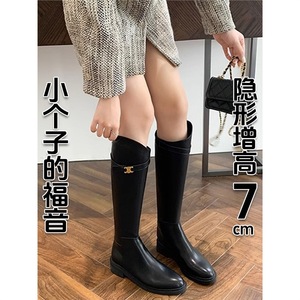 小个子长靴内真皮骑士靴子女2025春秋季厚底英伦风长筒靴