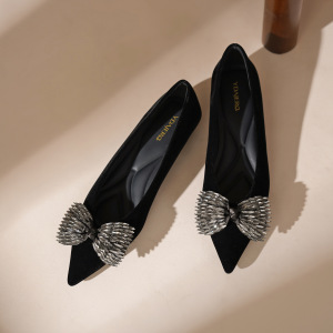 一代佳人尖头水钻低跟女鞋2025秋季新款蝴蝶结平底单鞋女26S1353