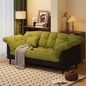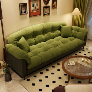 现代简约卧室沙发客厅直排双人出租房懒人布艺沙发复古新款小户型