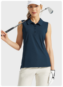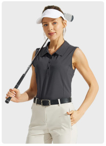 女士新款高尔夫球衣网球上衣时尚无袖POLO衫女休闲运动上衣女背心
