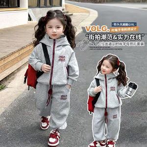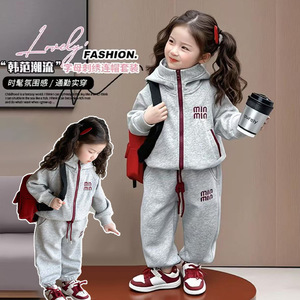 儿童秋款卡通印花套装女童洋气法式花边卫衣酷闪闪亮灯卫裤两件套