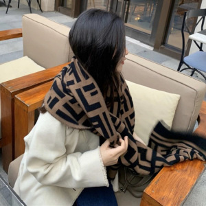 高版本FD围巾男女情侣款羊绒披肩ff双面百搭长款围脖两用秋冬季
