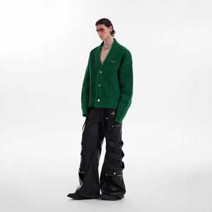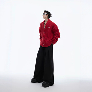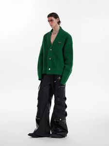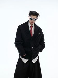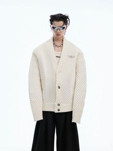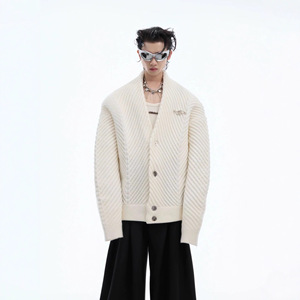 2025重磅小众复古立体螺纹宽松V领毛衣宽松柔软慵懒针织衫外套ins
