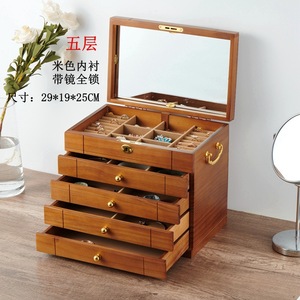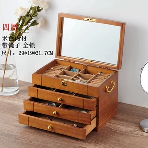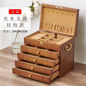 首饰盒实木质复古带锁饰品项链黄金珠宝首饰收纳盒高档精致大容量