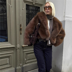 黑色毛毛外套仿皮草高级感棕色气质时尚保暖小个子短款冬季女