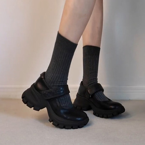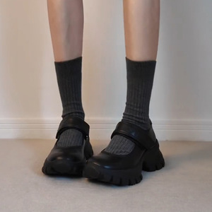 羊皮~2025新款魔术贴浅口厚底玛丽珍鞋女简约百搭通勤增高小皮鞋