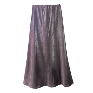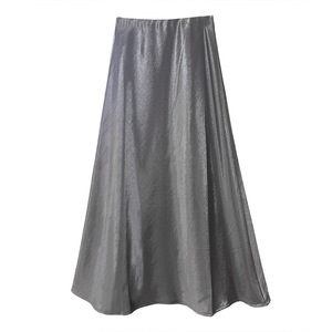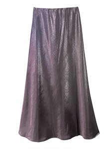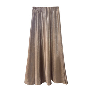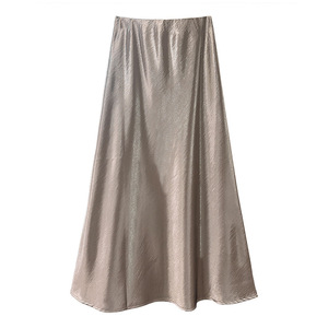 品质烫金缎面鱼尾裙2025秋季新款纯色松紧腰百搭长裙御姐风半身裙