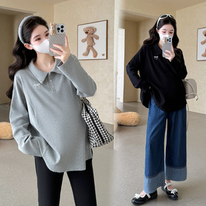 孕妇长袖T恤外穿秋2025秋冬新款宽松大码孕妇装中长款休闲上衣