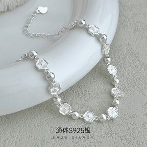 榕树下S925银夏季小清新桃花手链女时尚ins素银转运珠闺蜜手饰品