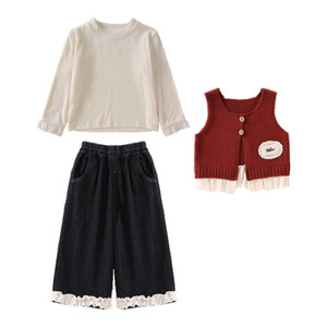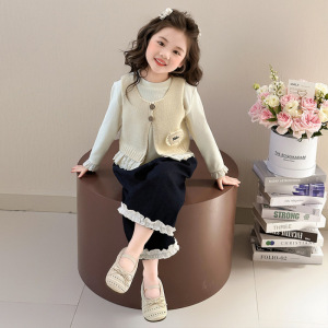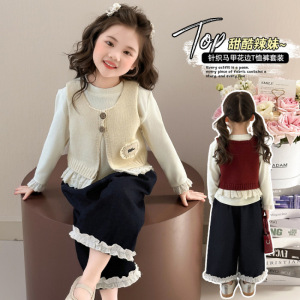 女童洋气秋季针织套装2025新款时尚儿童女宝宝休闲韩范秋装三件套
