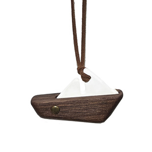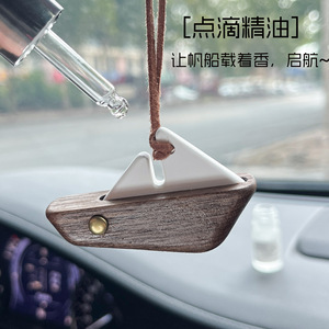 航海风木质帆船黑胡桃牛皮绳帆船车载挂件香薰