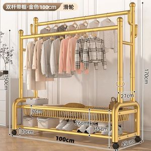 挂衣架室内家用衣服架子落地卧室加厚晾衣架落地式简易双杆衣帽架