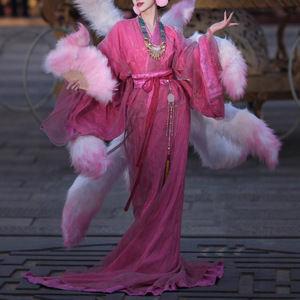 九尾狐妲己cos服战国袍汉服女超仙拖尾影楼摄影古装舞蹈演出妖娆