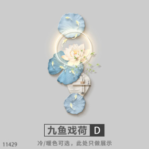 原木奶油风九鱼图玄关装饰画水培绿植肌理走廊过道入户正对门挂画