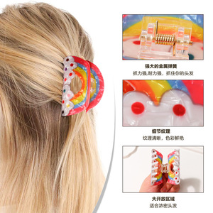 戈蕾思饰品梦幻彩虹云朵抓夹韩系甜美后脑勺盘发发夹鲨鱼夹发饰女