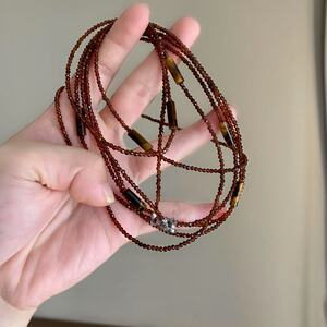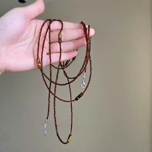 小众时髦复古多层棕色虎眼石串珠项链女毛衣链超长叠戴挂脖锁骨链