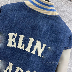 牛仔拼接撞色棒球夹克外套 休闲中性风宽松百搭长袖开衫 ZW62900