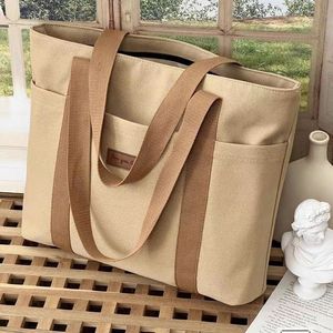 原创设计日系加厚简约百搭通勤帆布手提袋托特学生上课单肩手提包