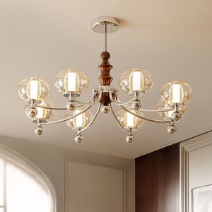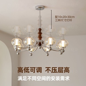 法式中古风客厅吊灯复古胡桃木色卧室酒店房间灯vintage中山灯具