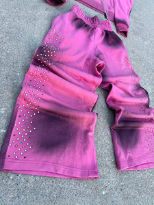 美式做旧复古设计感不规则连帽衫拉链烫钻休闲裤宽松男女同款卫衣