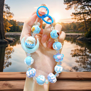 直播间同款月亮手绘珠钥匙扣可爱手机挂件包包配饰汽车钥匙链货源