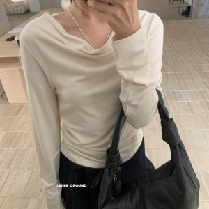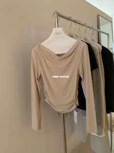 i miss2025秋季新款设计感纯欲一字肩长袖T恤女修身显瘦打底上衣