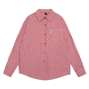 韩系chic穿搭红色格子长袖外套衬衫男女皆可穿秋季新款小个子衬衣