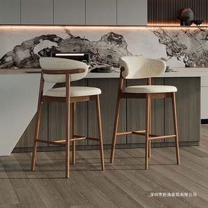 酒吧设计师台椅吧台脚凳靠背北欧现代简约轻奢实木家用高脚椅子