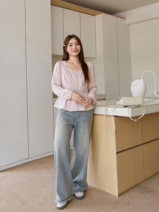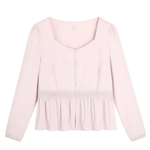 轻法气质正肩方领花边收腰显瘦小衫女秋季新款胖mm大码衬衫65454