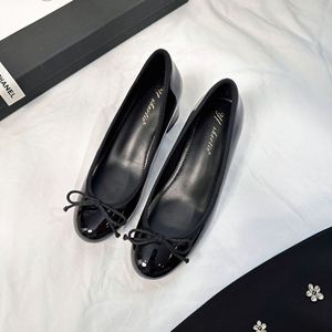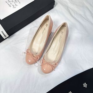 增高6公分蝴蝶结粗跟浅口单鞋女2025早秋新款法式漆皮圆头芭蕾鞋